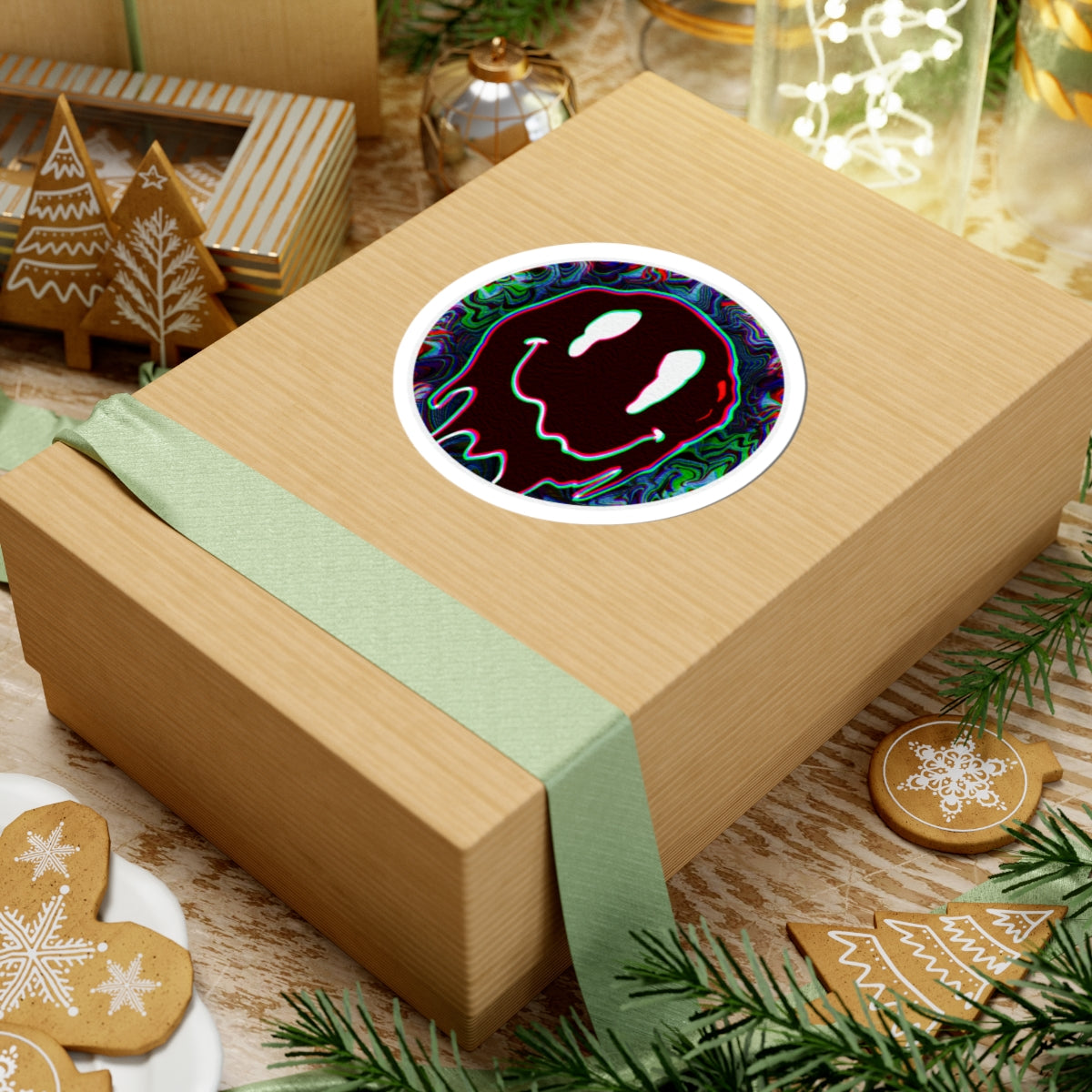 Add a bold, psychedelic twist to your items with this drippy maroon smiley face sticker. Featuring a vibrant, trippy design in rich maroon tones, this vinyl decal is perfect for laptops, journals, water bottles, and more — a playful way to show off unique, colorful style.