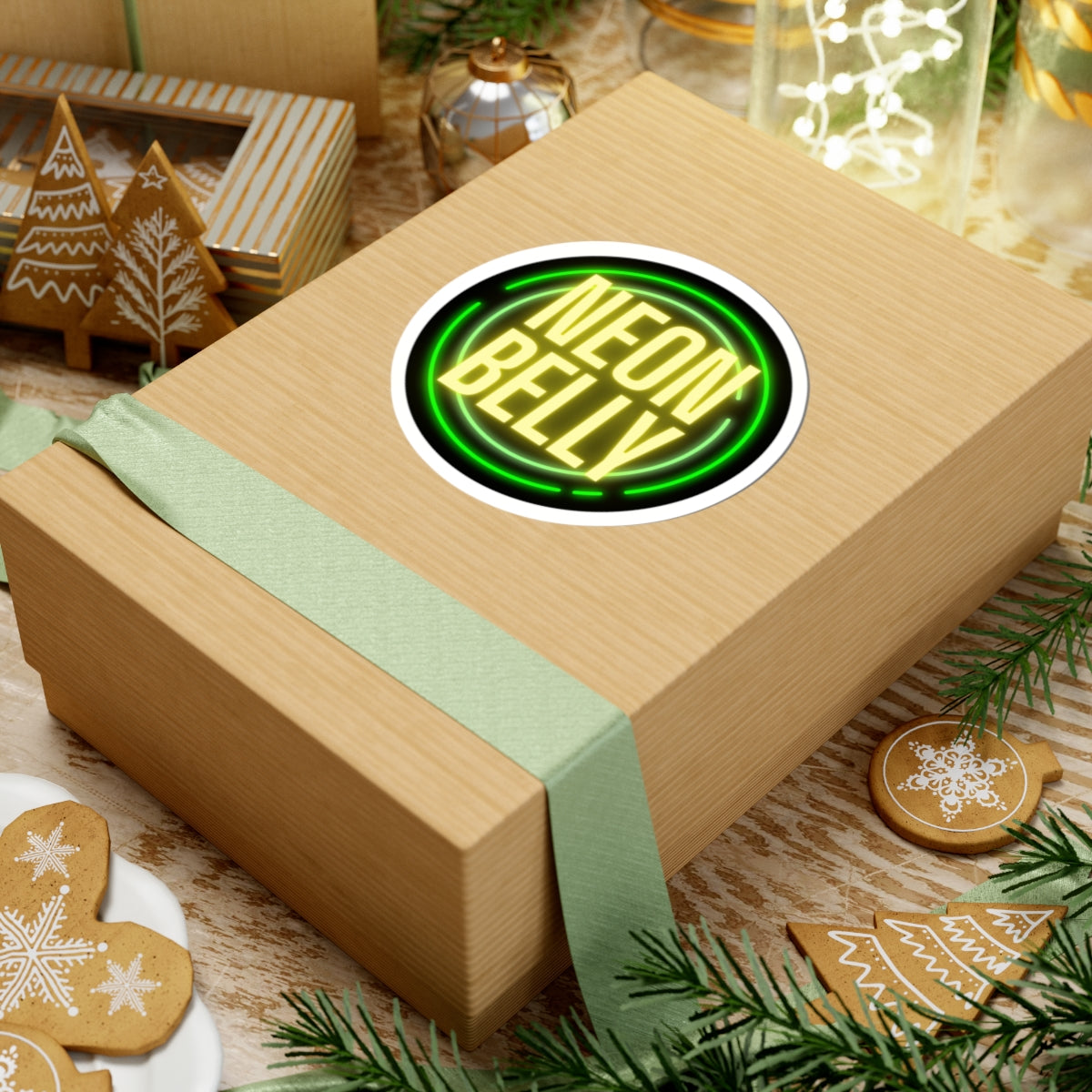 A glossy, neon-inspired kiss-cut sticker that brings bold retro energy to laptops, journals, water bottles, and more. Bright yellow “NEON BELLY” lettering sits in a vibrant green circular glow against a deep black backdrop, creating the look of a vintage neon sign. The glossy paper finish and eco-solvent inks deliver eye-catching color and a scratch-resistant surface that keeps the design vivid. Lightweight and easy to apply, it peels cleanly from the backing and adheres smoothly to flat surfaces for a bubble-free finish. Choose white or transparent backing and from four sizes to match your placement — a lively accent for gear, décor, and creative projects.