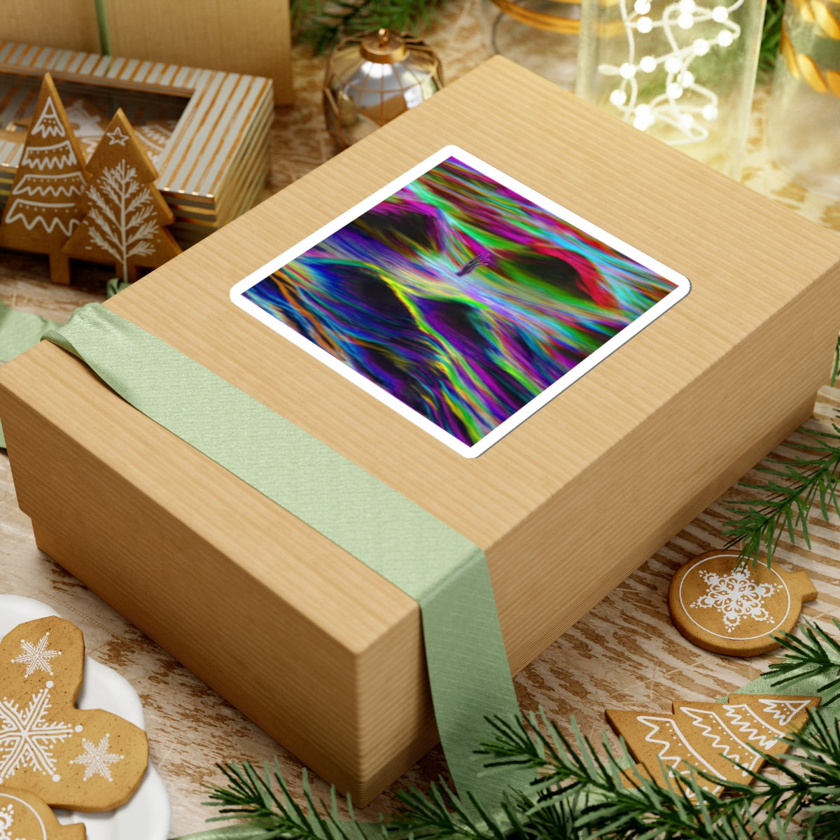 A glossy kiss-cut vinyl sticker that dances with color. Swirling neon waves of magenta, cyan, lime and indigo blend into a liquid landscape, while a small, solitary hand rises from the tide — a surreal, dreamlike accent for laptops, journals, water-resistant cases and more. The glossy finish deepens the hues and gives a polished, slightly reflective surface that makes the art pop under different lights. This compact square sticker adds a bold, evocative touch to personal gear and creative spaces for those who love vivid, slightly uncanny visuals.