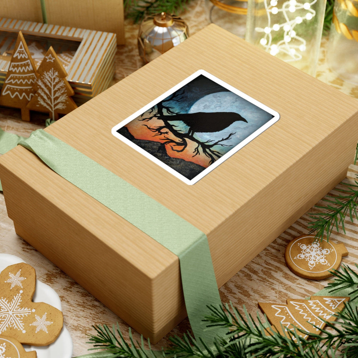 Raven Silhouette Sticker — Moonlit Crow on Branch Kiss-Cut Decal